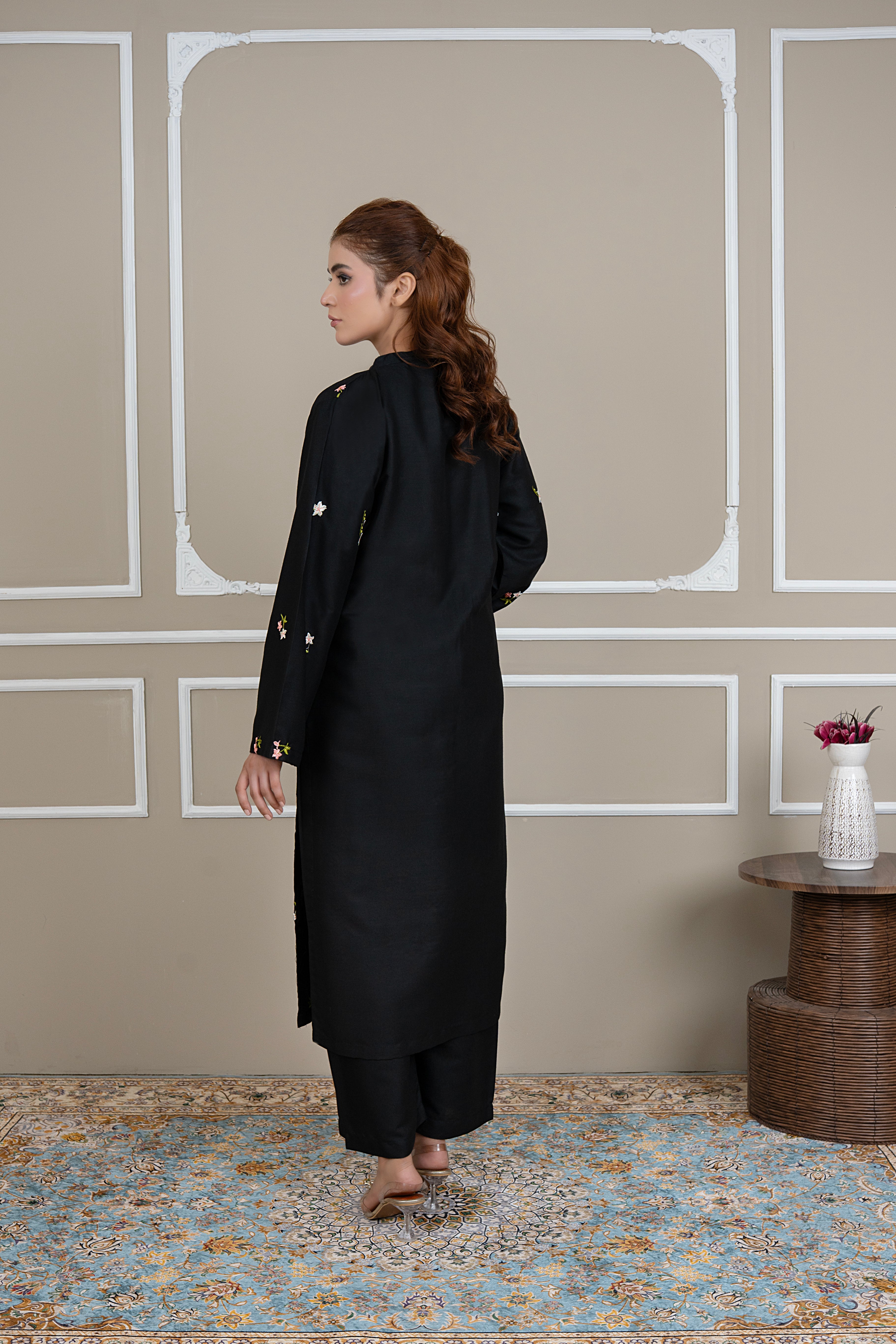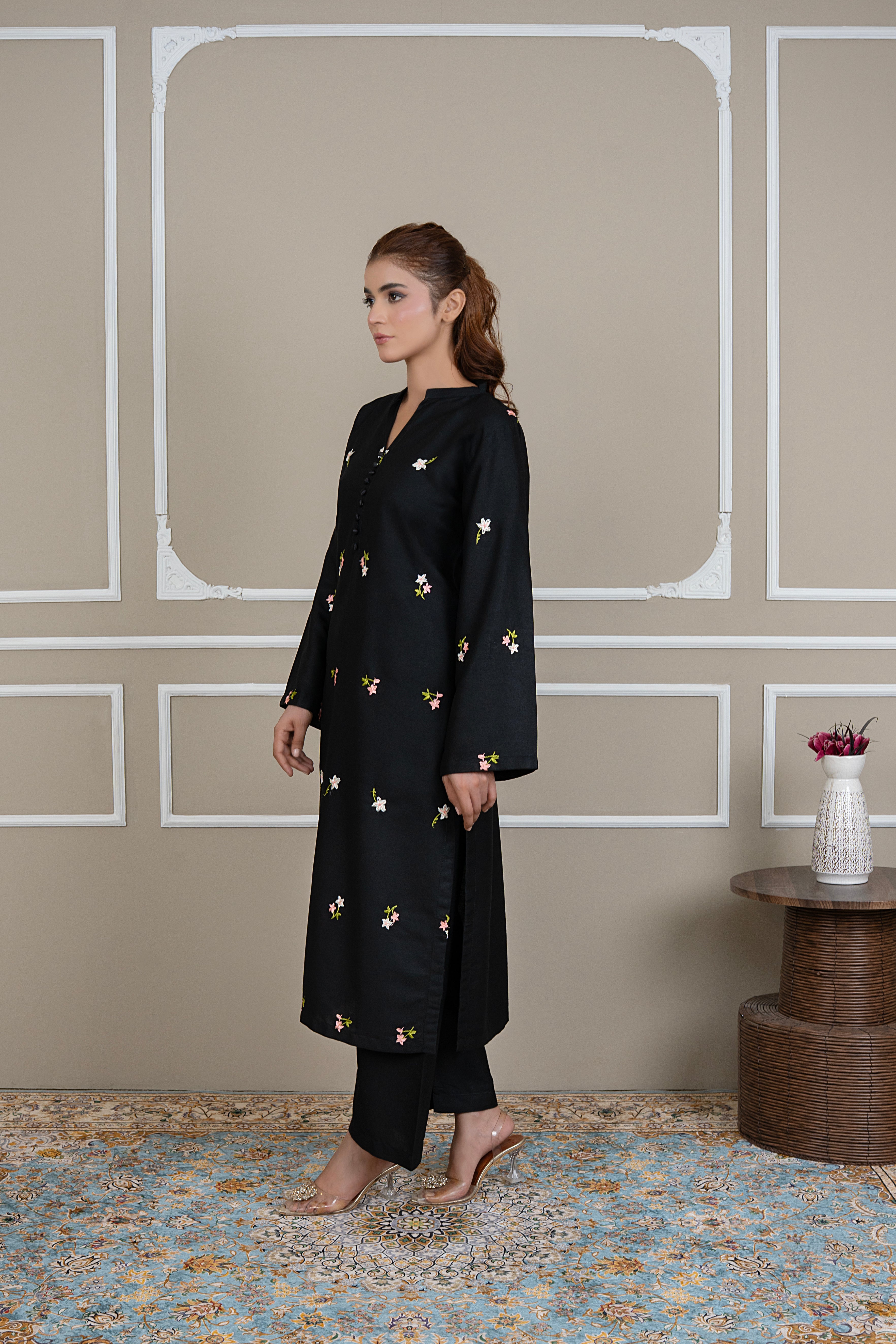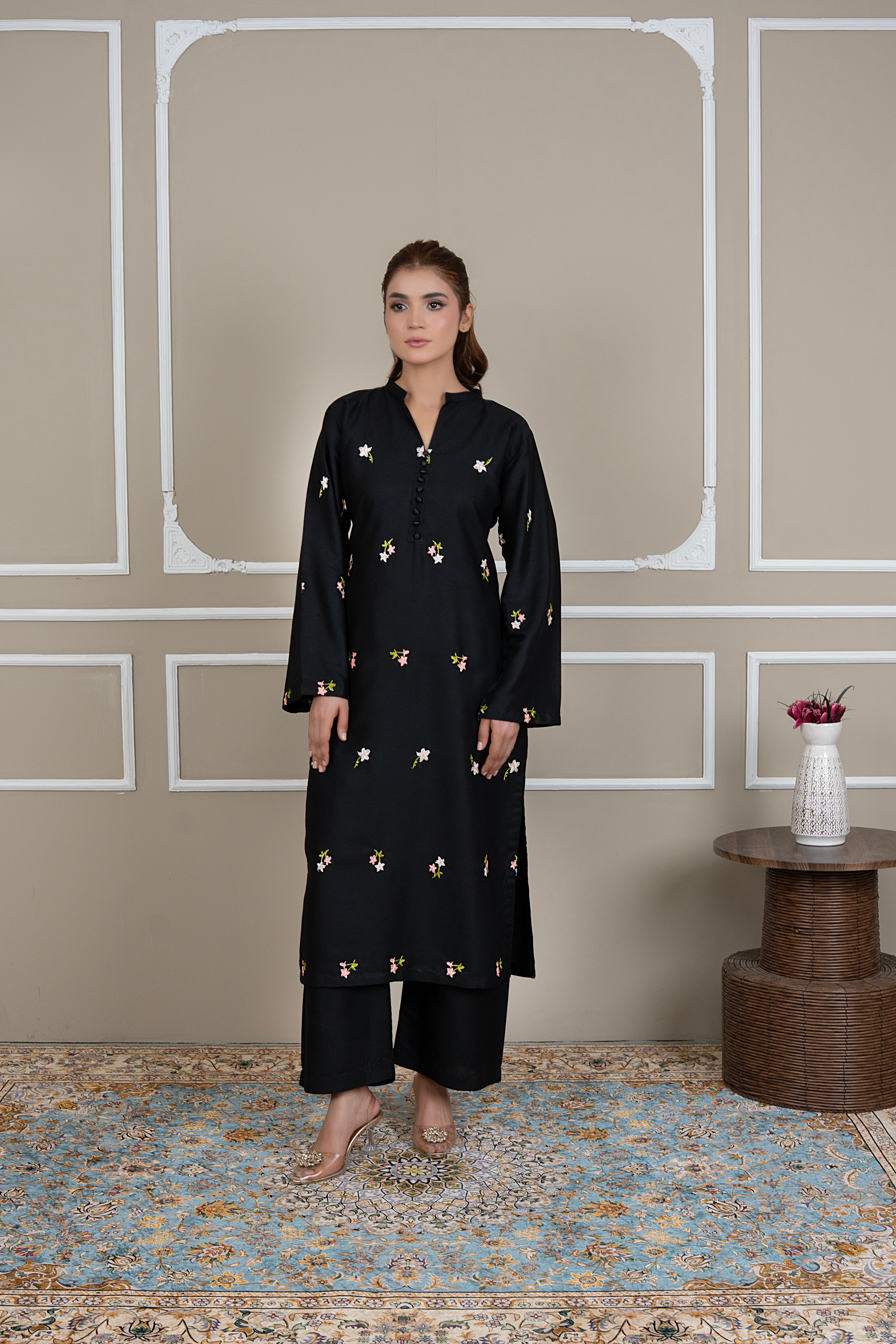 The Mehreen 2 Pcs Suit in classic black stone linen exudes timeless charm. Featuring elegant embroidery and a breezy silhouette, it’s designed for effortless everyday wear while keeping you comfortably stylish in every season.