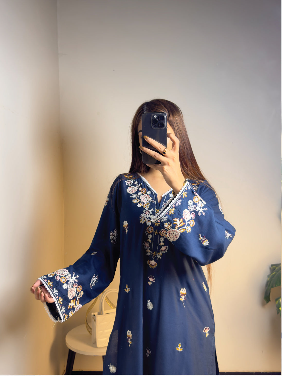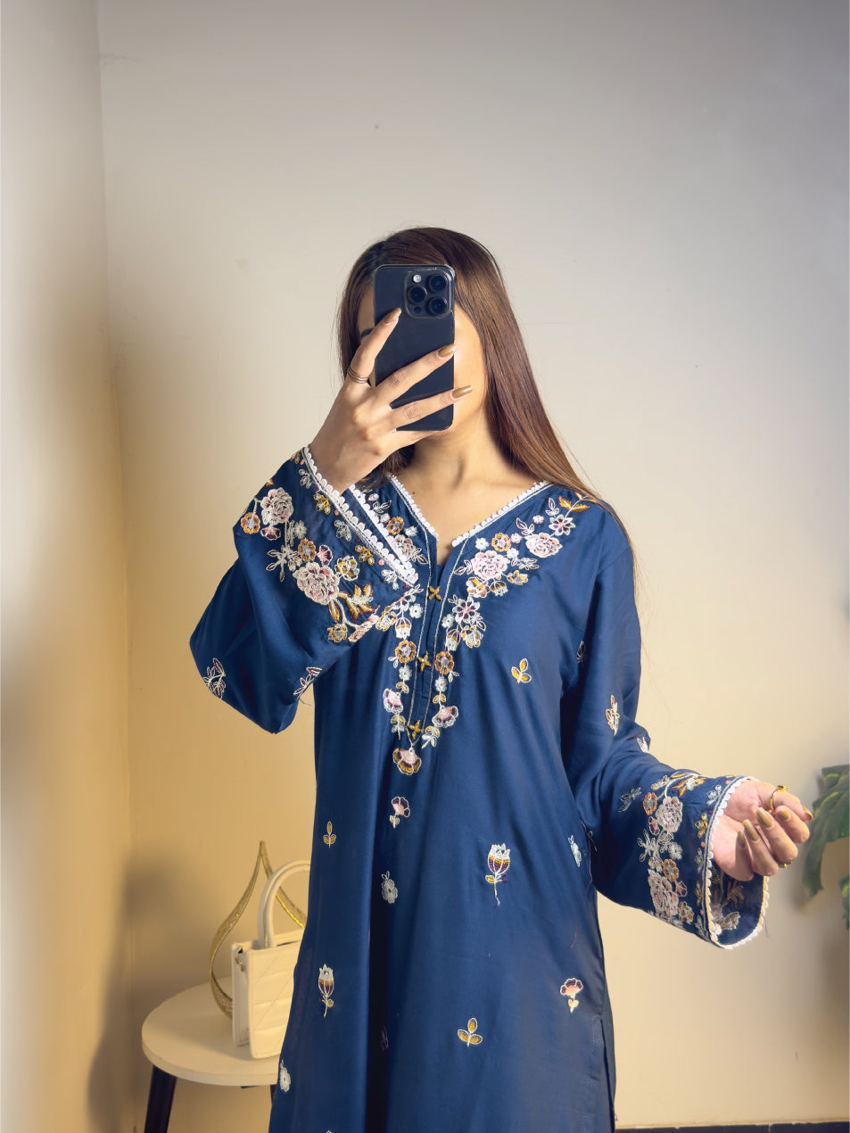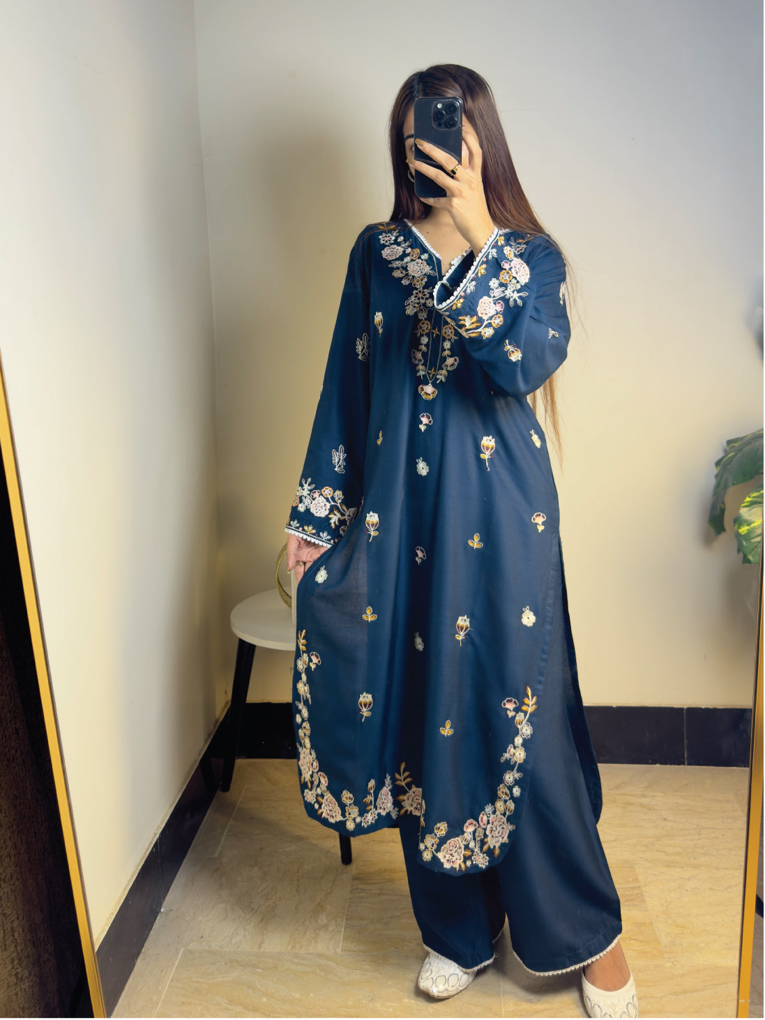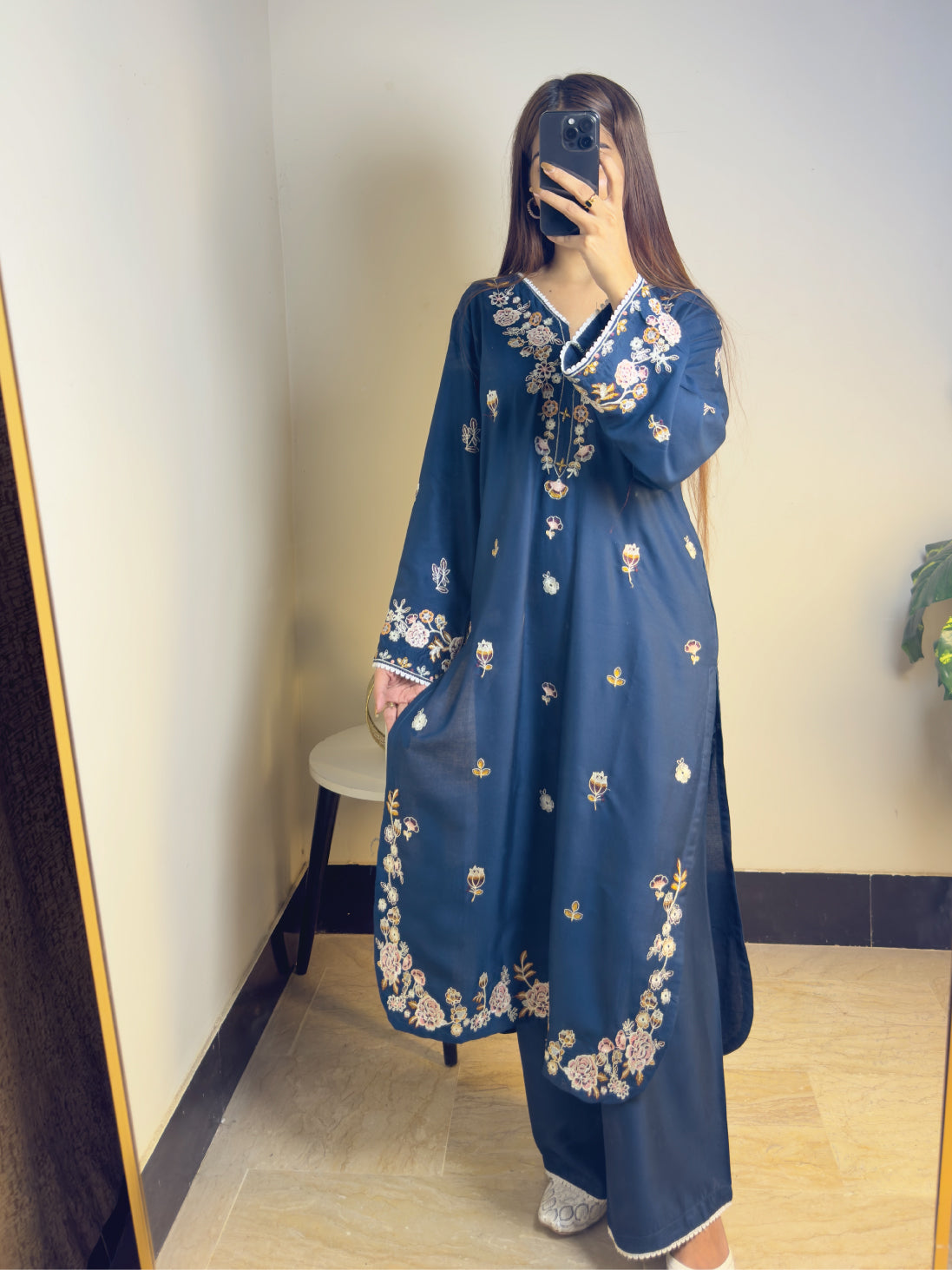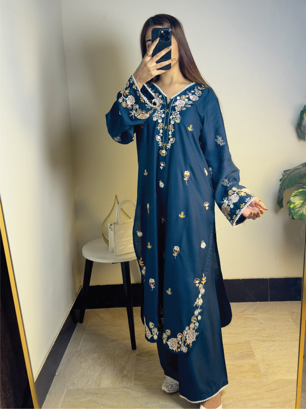The Noya 2 Pcs Suit in rich teal linen embodies understated luxury. Adorned with elegant embroidery, this stylish ensemble combines comfort with a sophisticated appeal — perfect for semi-formal and festive gatherings alike.